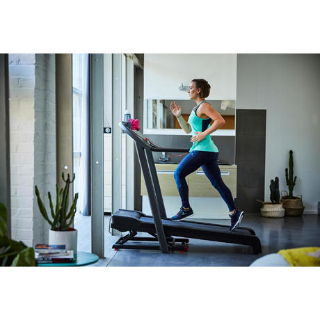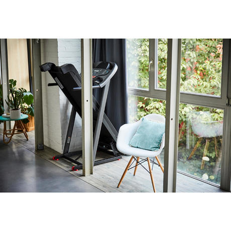Po złożeniu bieżnia zajmuje powierzchnię na podłodze o wymiarach 98x73 cm.