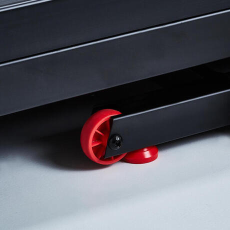 Bieżnia treningowa T520 jest składana i posiada rolki ułatwiające jej przesuwanie.