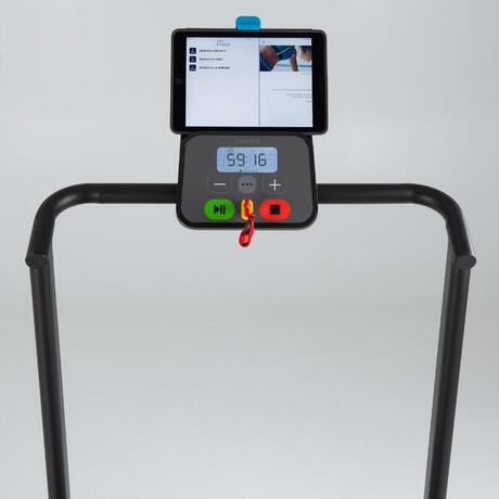 Bieżnia Domyos Walk500 posiada podświetlaną i intuicyjną konsolę z przyciskami START/STOP oraz regulacją prędkości "+/-".