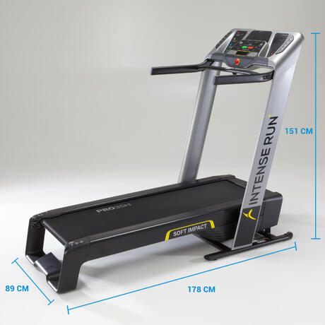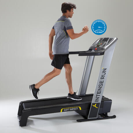 Bieżnia treningowa INTENSE RUN by Domyos pozwala trenować w domu, bez względu na warunki pogodowe, oraz połączyć aktywność fizyczną z codziennymi obowiązkami. Możesz dostosować swoje treningi do obranych celów oraz swojej kondycji fizycznej i cieszyć się większym komfortem jak i wydajnością.
