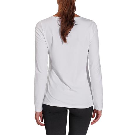 Ta prosta i wygodna koszulka z długim rękawem i okrągłym dekoltem wykonana jest z połączenia bawełny z elastanem.