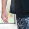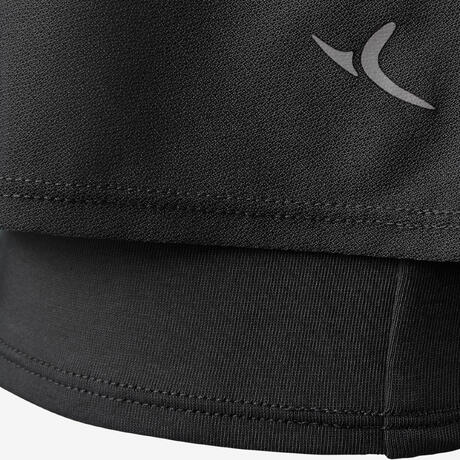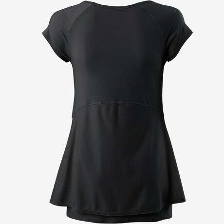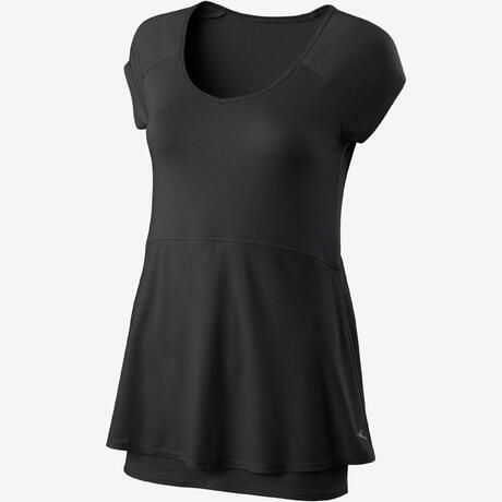 Ta koszulka nie podciąga się podczas treningu. Część blisko ciała nie przesuwa się. Wierzchnia część zakrywa biodra, brzuch i pośladki.