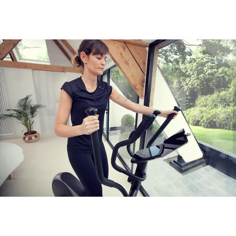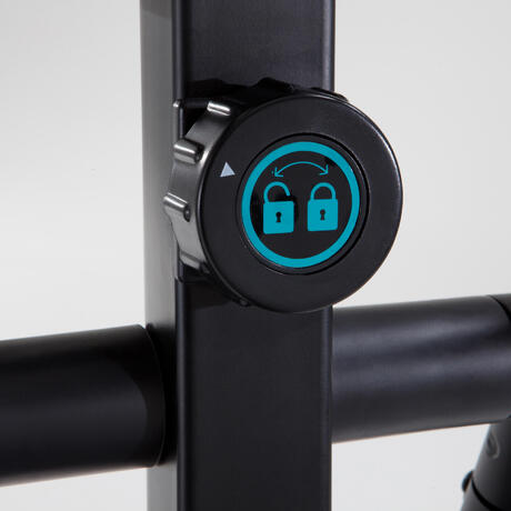 - Pokrętło blokujące ramiona i pedały zapewnia maksymalne bezpieczeństwo podczas wchodzenia/schodzenia z roweru eliptycznego.