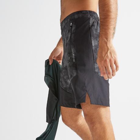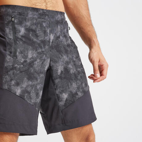 Spodenki fitness kardio męskie FST 500 czarno-szare AOP