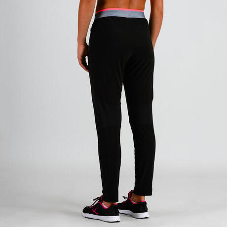 Szeroki pasek podtrzymuje spodnie na miejscu podczas zajęć fitness.